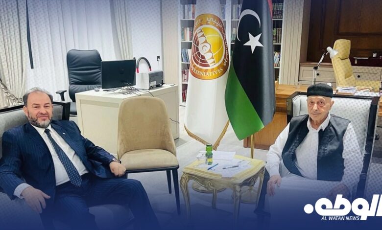 التقى رئيس مجلس النواب المستشار “عقيلة صالح”اليوم الأربعاء، النائب الثاني لرئيس المجلس الأعلى للدولة” عمر العبيدي”وذلك بمقر مكتبه في مدينة القبة.
