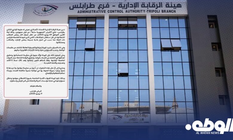 هيئة الرقابة الإدارية تدين محاولة إحراق مبناها في طرابلس من قبل مجهولين