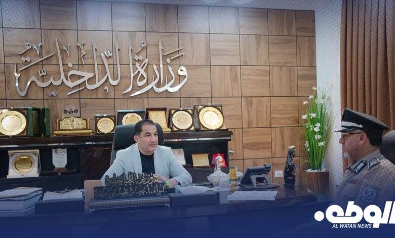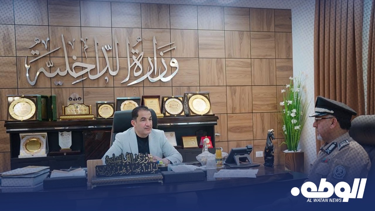 عقد وزير الداخلية اللواء “عصام أبوزريبة” اجتماعًا موسعًا مع مدير الإدارة العامة لحماية البعثات الدبلوماسية اللواء.أ زياد ناصر الحاسي، جرى خلاله مناقشة التحديات التي تواجه الإدارة، واستعراض الخطة الأمنية المعتمدة لتأمين السفارات والقنصليات داخل الدولة.