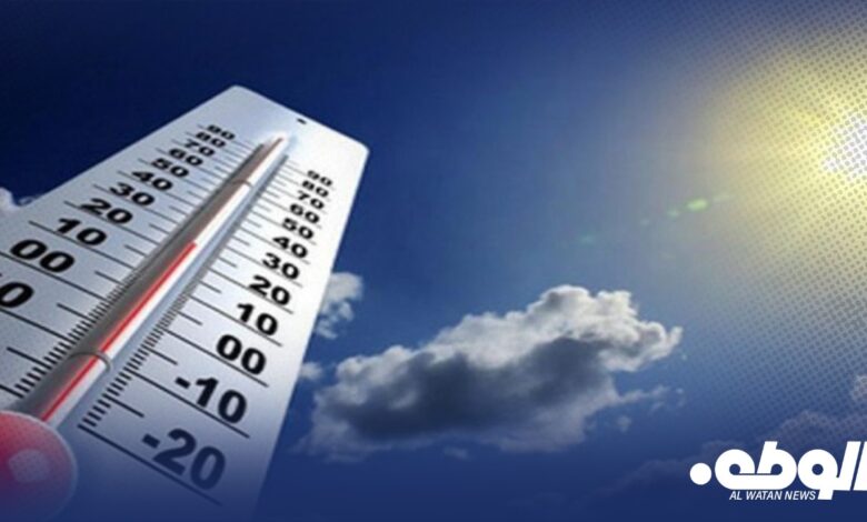 أشارت توقعات المركز الوطني للأرصاد الجوية إلى وجود تراجع ملحوظ في درجات الحرارة هذا اليوم على أغلب مناطق الشمال الغربي، بداية من المناطق الممتدة من رأس اجدير إلى مصراتة مع ارتفاع في الرطوبة، حيث تكون درجات الحرارة القصوى على معظم المناطق الساحلية مابين (30-34)مْ،