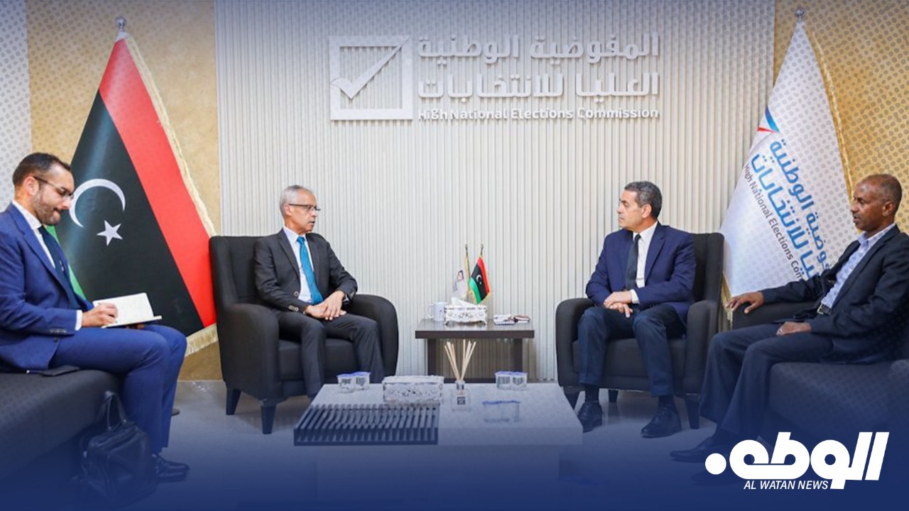 استقبل رئيس مجلس المفوضية الوطنية العليا للانتخابات، عماد السايح، سفير جمهورية فرنسا لدى ليبيا، مصطفى مهراج، والوفد المرافق له، بحضور عضو مجلس المفوضية أبوبكر مرده، وذلك بمقر المفوضية في العاصمة طرابلس.