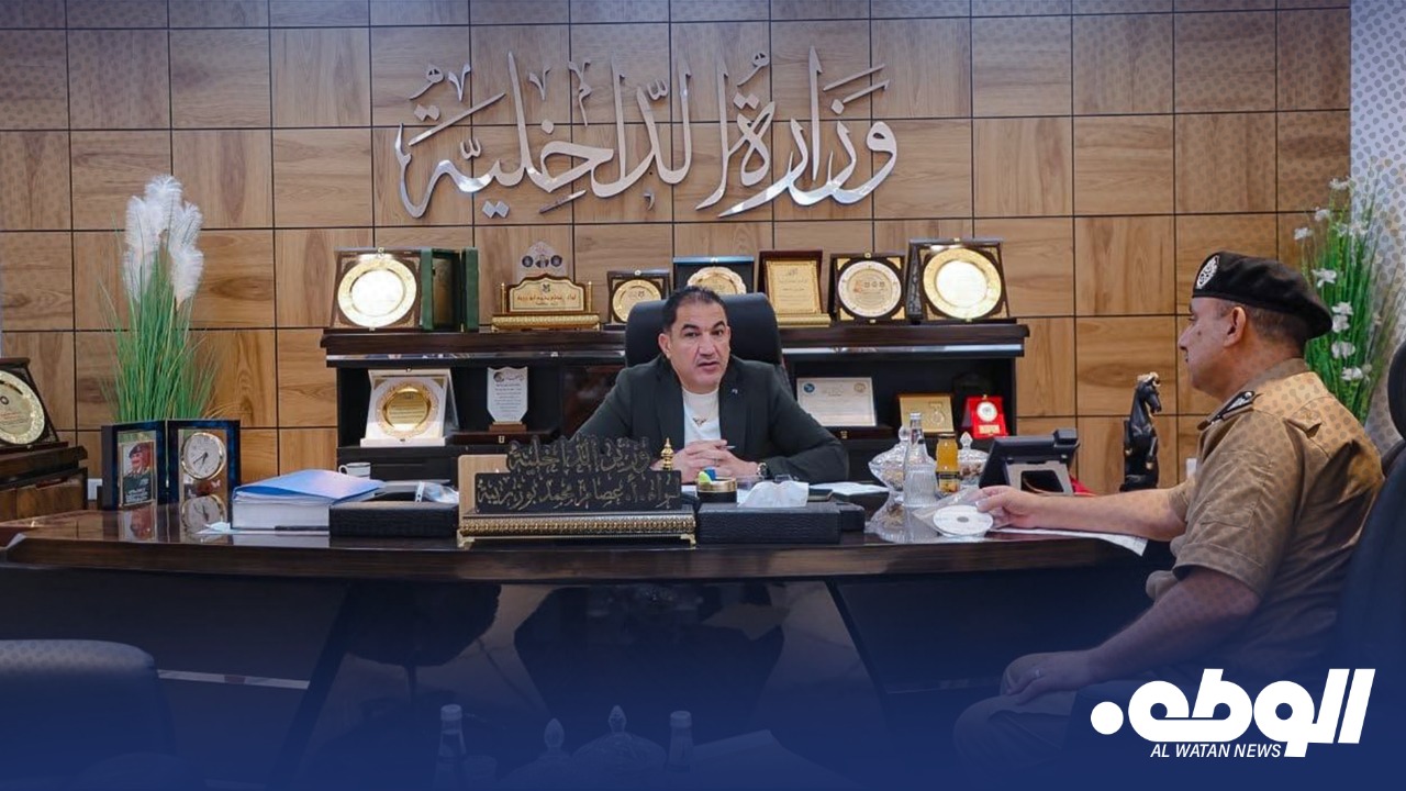 اجتمع وزير الداخلية بالحكومة الليبية اللواء عصام أبوزريبة، مع مدير فروع هيئة السلامة الوطنية بالمنطقتين الشرقية والجنوبية اللواء طارق أحمد الشيهوب، لمتابعة جاهزية الهيئة واستعداداتها لمواجهة الطوارئ خلال فصل الصيف، الذي يشهد عادة ارتفاعًا في معدلات حوادث الحرائق.