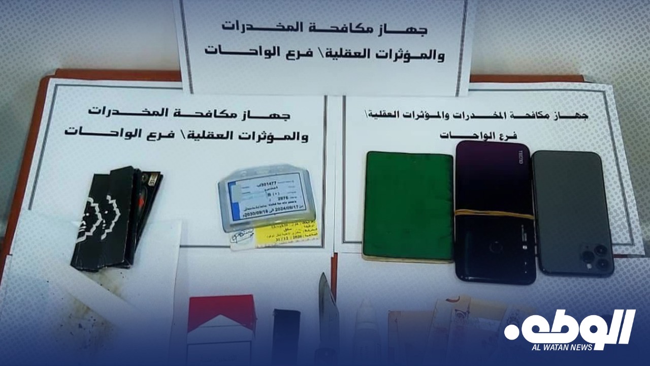 وقال الجهاز إنه أثناء التحقق من هويته ظهرت عليه علامات الارتباك، ما استدعى تفتيش السيارة احترازياً، حيث عُثر بداخلها على قطعة بنية اللون يُشتبه أنها مادة الحشيش، وسكين يُستخدم في التقطيع، إضافة إلى هاتفين نقالين، أوراق بافرة، علبة سجائر، جواز سفر، رخصة قيادة، تصريح نفطي، ومبلغ مالي بقيمة 70 دينارًا ليبيًا.