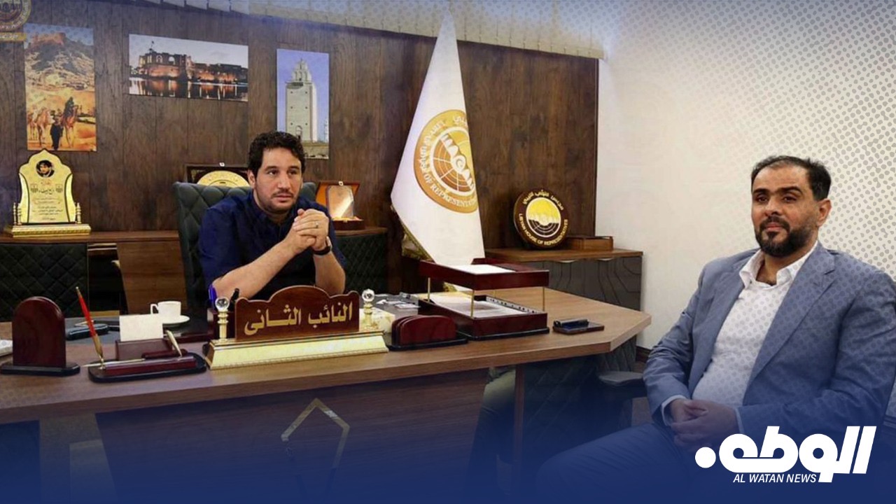 عقد النائب الثاني لرئيس مجلس النواب، “مصباح دومة”، اليوم، اجتماعًا بمكتبه في ديوان مجلس النواب بمدينة بنغازي، بحضور رئيس لجنة الدفاع والأمن القومي، ” طلال الميهوب”، مع رئيس الحكومة الليبية، الدكتور “أسامة حماد”.