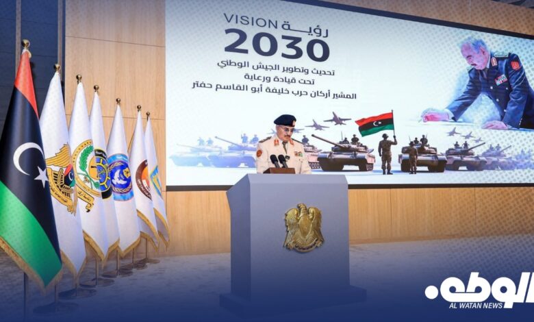 كما أعلن حفتر عن إطلاق رؤية 2030 لتحديث القوات المسلحة، بهدف بناء جيش متطور قادر على مواجهة التحديات الإقليمية والدولية، والحفاظ على الأمن والاستقرار في ليبيا، مؤكداً أن الجيش هو صمام أمان الوطن وركيزة وحدته.