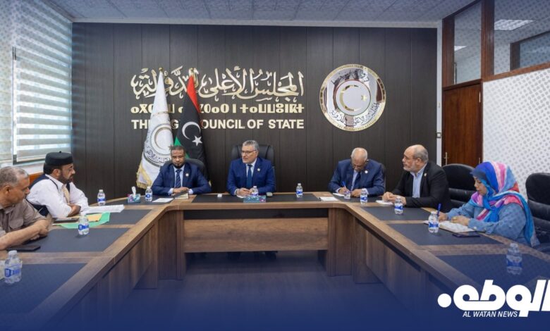 اجتمع رئيس مجلس الدولة الدكتور محمد تكالة، اليوم الأحد، مع عدد من أعيان المنطقتين الجنوبية والشرقية، بحضور النائب الأول حسن حبيب، والنائب الثاني موسى فرج، ومقرر المجلس بلقاسم دبرز، وذلك بمقر المجلس في العاصمة طرابلس.