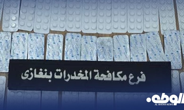 أعلن جهاز مكافحة المخدرات والمؤثرات العقلية – فرع بنغازي تنفيذ كمين محكم أسفر عن ضبط كمية كبيرة من الأقراص المخدرة بحوزة أحد المروجين.