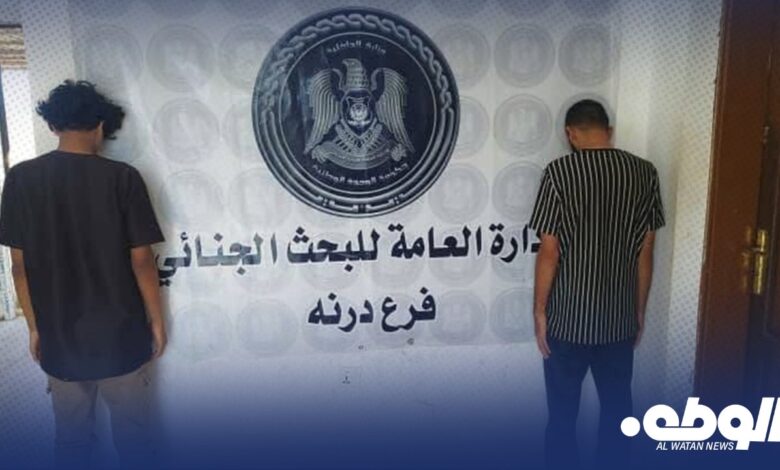 باشر جهاز البحث الجنائي فرع درنة عملية تحرٍّ دقيقة عقب ورود معلومات تفيد بقيام شخصين باقتحام مسكن خاص بعمالة وافدة داخل مدينة درنة.