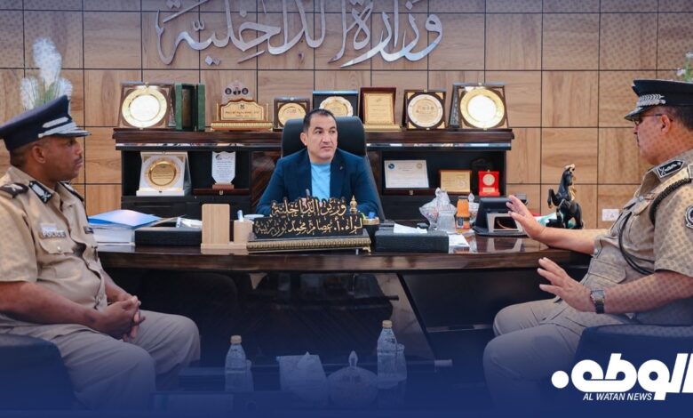اجتمع وزير الداخلية بالحكومة الليبية  اللواء عصام أبوزريبة، مع مدير أمن الجبل الأخضر اللواء “منصور الجديد”، ومعاونه اللواء “عبدالباري محمد” لاستعراض الأوضاع الأمنية والإدارية داخل نطاق المديرية.