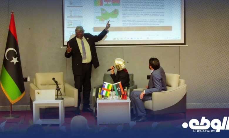 استضافت جامعة العرب للتكنولوجيا بمدينة بنغازي رئيس وزراء جمهورية إفريقيا الوسطى الأسبق وعضو البرلمان في جمهورية إفريقيا الوسطى، مارتن زيغيلي، الذي ألقى محاضرة حول “الأزمات الإفريقية وآفاق التعاون المشترك” لطلبة معهد الدراسات الدبلوماسية، مستعرضًا مسار العلاقات الليبية – الإفريقية الوسطى وآفاقها المستقبلية، بحضور وزير الخارجية والتعاون الدولي بالحكومة الليبية عبدالهادي الحويج.