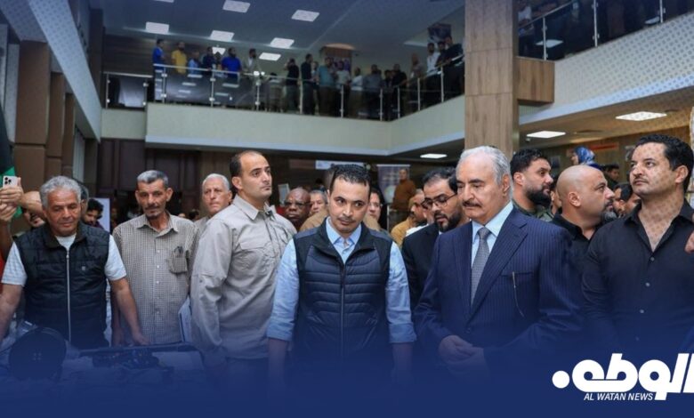 زار القائد العام للقوات المسلحة، المشير “خليفة حفتر”، معرض بنغازي الدولي للكتاب في نسخته الرابعة، رفقة رئيس الحكومة الليبية، الدكتور “أسامة حماد”.