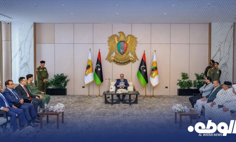 ورحب القائد العام بمشايخ وأعيان قبائل الجبل الغربي وباطن الجبل، مشيرًا إلى مواقفهم الوطنية المشرفة ودورهم في توحيد الصف ولمّ الشمل ودعم جهود المصالحة الوطنية، ومؤكدًا أن قبائل ليبيا هي السند الحقيقي للوطن، وصمّام الأمان الذي حافظ على وحدة البلاد في أصعب الظروف.