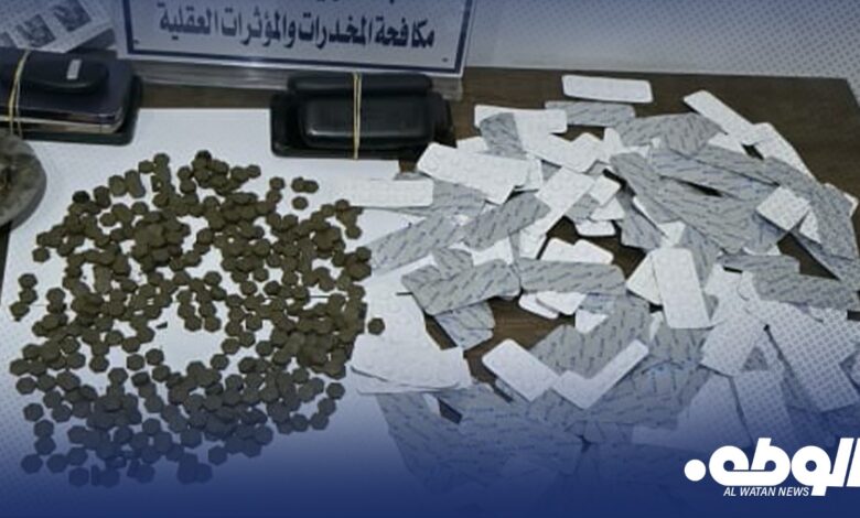 وعُثر خلال العملية على 1650 قرصًا من نوع بترل، إضافة إلى 384 قرصًا من نوع إكسترا ذات الشكل السداسي، والتي تُعد من أخطر الأنواع المتداولة، وتحمل رسومات تُستخدم لترويجها، من بينها نسخة تحمل صورة معمر القذافي.