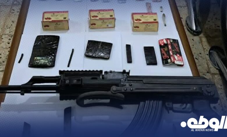 وأوضح الجهاز أنه وبعد استيفاء الإجراءات القانونية واستصدار إذن من وكيل النيابة، تمت مداهمة منزل المشتبه به وضبطه متلبسًا، حيث عُثر بحوزته على 293 قرص «ترامادول» و60 قرص «أبترل»، إضافة إلى ست قطع يُشتبه في كونها مادة الحشيش، وثلاثة أمواس تستخدم في تقطيعها، فضلًا عن بندقية كلاشينكوف.