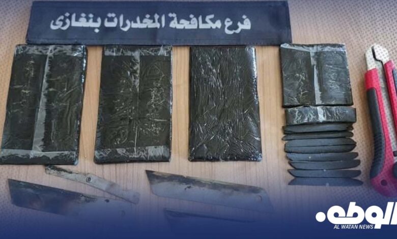 تمكن أعضاء فرع بنغازي من ضبط شخصين بعد نصب كمين محكم، وبحوزتهما ثلاث قطع كبيرة من مخدر الحشيش المعروف باسم “باسبورت”، بالإضافة إلى قطعة كبيرة مقسمة إلى أجزاء مختلفة جاهزة للبيع.
