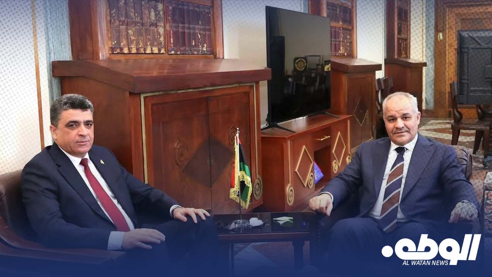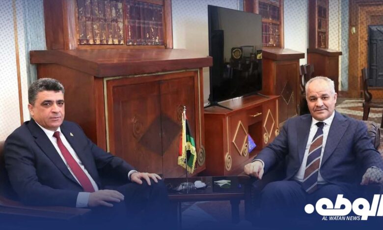 عقد محافظ مصرف ليبيا المركزي ناجي محمد عيسى اجتماعًا موسعًا مع رئيس ديوان المحاسبة الليبي خالد شكشك، بحضور عدد من مديري الإدارات والمختصين من الجانبين، وذلك في إطار تعزيز التعاون المؤسسي وتكامل الأدوار بين المؤسستين.