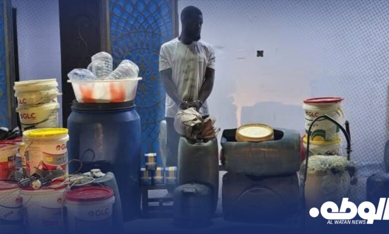 مكافحة المخدرات بنغازي تضبط مصنع خمور محلية وقرابة ألف لتر من المواد المسكرة