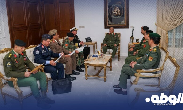 عقد القائد العام للقوات المسلحة، المشير خليفة حفتر، اجتماعًا مع رئيس الأركان، الفريق أول ركن خالد حفتر، ورؤساء الأركان العامة، الفريق بحار شعيب الصابر، واللواء عبدالسلام الحاسي، واللواء ركن عادل بوشاح، واللواء أحمد المسماري، واللواء ركن صفوان بوطيغان، وذلك بمكتبه في مقر القيادة العامة.