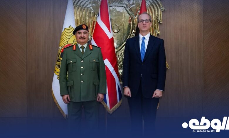 من جانبه، أشاد السفير البريطاني بجهود القيادة العامة في تعزيز الأمن والاستقرار، مثمنًا حالة الاستقرار والنهضة العمرانية التي تشهدها المدن الليبية، ومؤكدًا اهتمام الشركات البريطانية بالمساهمة في تنفيذ مشروعات التنمية والبنية التحتية، كما بحث الجانبان ملف مكافحة الهجرة غير الشرعية وسبل الحد من شبكات تهريب البشر.
