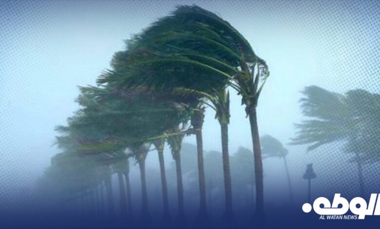 وتكون الرياح غربية إلى جنوبية غربية على مناطق الشمال الغربي، وغربية إلى شمالية غربية على مناطق الشمال الشرقي، وتكون نشطة إلى قوية خاصة على مناطق الجبل الأخضر وأقصى الساحل الشرقي، وتشهد بعض المناطق سقوط أمطار متفرقة صباح اليوم، قد تصحبها خلايا رعدية أحياناً.