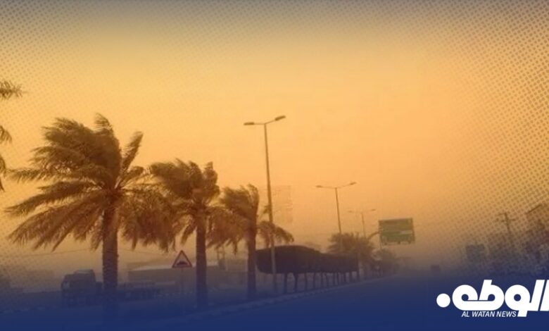 تشهد أغلب المناطق الشمالية اليوم، رياحًا نشطة السرعة، تكون غربية إلى جنوبية غربية على مناطق الشمال الغربي، وجنوبية شرقية على مناطق الشمال الشرقي، ما يؤدي إلى إثارة الأتربة والغبار وتدني مستوى الرؤية الأفقية، خاصة على مناطق سهل بنغازي، أجدابيا والخليج، جنوب الجبل الأخضر.