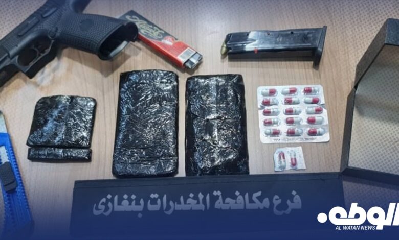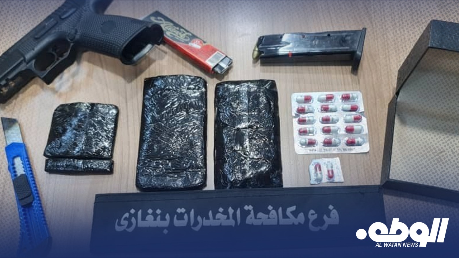 تمكن أعضاء جهاز مكافحة المخدرات والمؤثرات العقلية فرع بنغازي من ضبط شخصين بحوزتهما مواد وأقراص مخدرة بقصد الاتجار، عقب تنفيذ كمين محكم أسفر عن القبض عليهما وضبط الكميات التي كانت بحوزتهما.