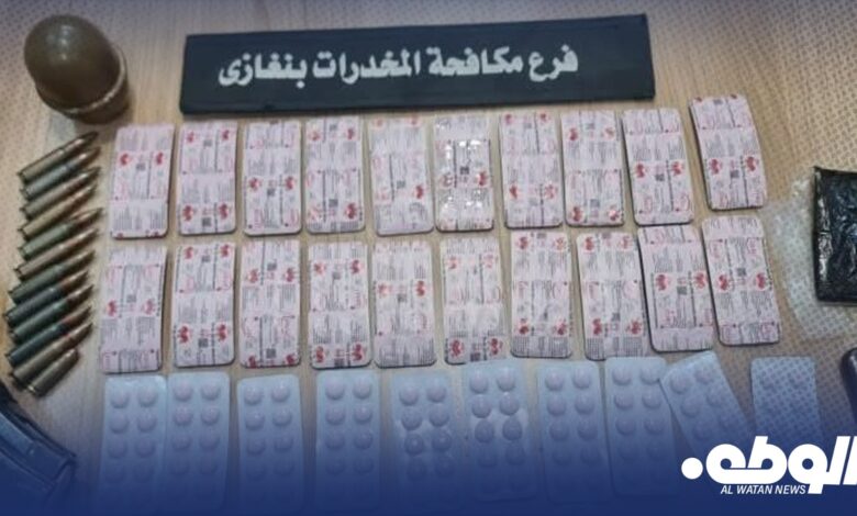تمكن أعضاء جهاز مكافحة المخدرات والمؤثرات العقلية فرع بنغازي من ضبط شخصين متلبسين بحيازة مواد مخدرة وأقراص مؤثرة عقليًا بقصد الاتجار، عقب تنفيذ كمين محكم أسفر عن ضبط كميات من الممنوعات ومضبوطات أخرى.
