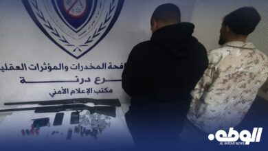 الوطن | متابعات تمكن جهاز مكافحة المخدرات والمؤثرات العقلية، فرع درنة، من ضبط شخصين في منطقة أم الرزم بحوزتهما مواد…
