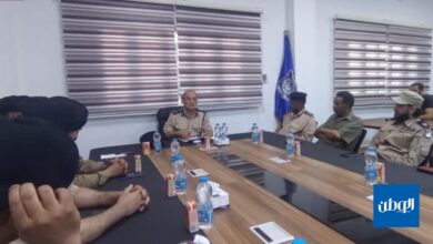 الوطن|رصد عقد اجتماع برئاسة مدير أمن سبها العميد أسامة عويدان مع رؤساء الأقسام وَالجهات الأمنية بِالمدينة لمُناقشة الأوضاع الأمنية وَكيفية…