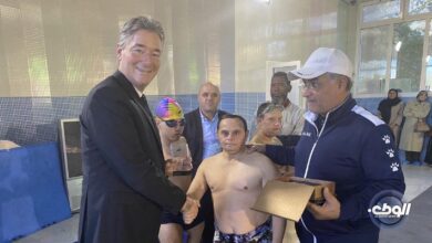 الوطن / رصد أجرى السفير الألماني لدى ليبيا، “ميخائيل أونماخت”، زيارة، السبت، لأكاديمية طرابلس للسباحة، الخاصة بذوي الاحتياجات الخاصة. وقال…