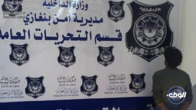 الوطن| متابعات ألقت وحدة التحريات العامة التابعة لمديرية أمن بنغازي القبض على شخص مصري الجنسية يعمل في محل للمواد الغذائية،…