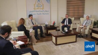 الوطن| رصد بحثَ رئيس ديوان المحاسبة خالد شكشك مع السّفير التّركيّ في ليبيا كنعان يلماز، اليوم الأحد، أوضاع الشّركات الليبية…