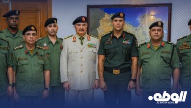 الوطن| متابعات استقبل القائد العام للقوات المسلحة المشير خليفة حفتر في مكتبه بمقرّ القيادة العامة، ضباط القوات المُسلحة الذين أكملوا بنجاح…