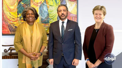 الوطن| رصد بحث مندوب ليبيا لدى الأمم المتحدة، طاهر السني، مع السفيرة ليندا غرينزفيلد، مندوبة الولايات المتحدة بالأمم المتحدة، “تطورات…