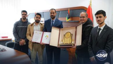 “القطراني” يكرم البطلة الليبية في لعبة الدفاع عن النفس “الكاراتيه”
