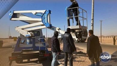 جهاز طارق بن زياد يواصل أعمال تركيب إنارة “LED” في طريق طرابلس