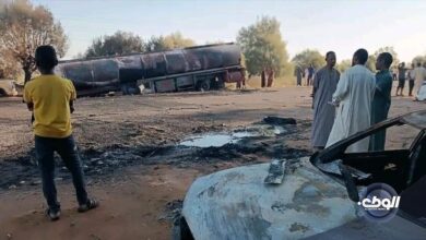 الوطن|رصد توفي 7 أشخاص وأصيب 50 آخرون، إثر حريق اندلع بشاحنة وقود خرجت عن مسار الطريق قرب مدينة أوباري، فجر…