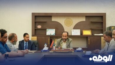 اجتماع موسع لمتابعة سير العمل بمجمع قصر فزان للمؤتمرات