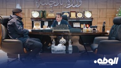 الوطن| متابعات بحث وزير الداخلية بالحكومة الليبية اللواء عصام أبوزريبة، مع مدير أمن المرج اللواء رافع البرغثي، سير العمل الأمني…