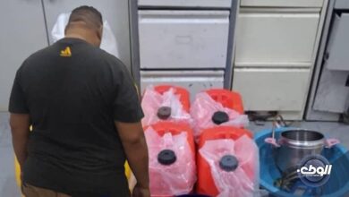 أمن بنغازي يضبط شخص وزوجته يمتهنان تصنيع الخمور المحلية وتوزيعها