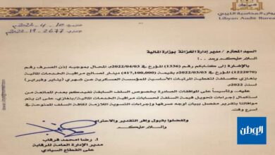 الوطن/متابعات وجه مدير الإدارة العامة للرقابة على القطاع السيادي بديوان المحاسبة رضا قرقاب مراسلة الى ادارة الخزانة بوزراة المالية لاستكمال…